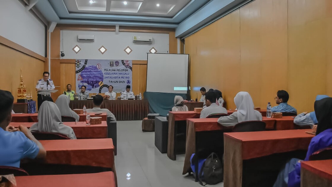 Asisten II Sekda Kota Metro membukaan kegiatan Lomba Pelajar Pelopor Keselamatan Lalu Lintas yang diselenggarakan di Hotel Grand Skuntum Kota Metro, Rabu (15/05/2024).