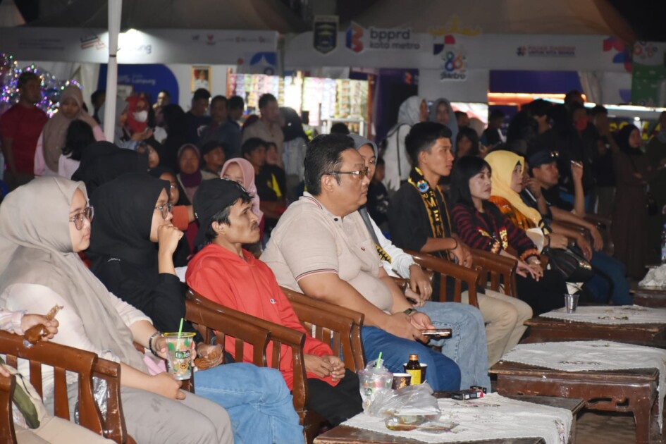 Tampilan musik ramaikan Panggung Festival Putri Nuban yang berlangsung di Lapangan Samber Park Kota Metro, Selasa Malam (20/06/2023).
