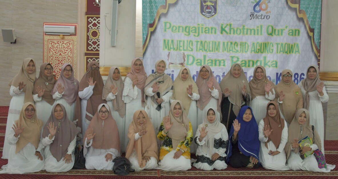 Pemerintah Kota Metro mengadakan Pengajian Khotmil Qur’an Majelis Taklim Masjid Agung Taqwa, dalam rangka Hari Jadi Kota ke-86 Tahun 2023, Sabtu (10/06/2023).