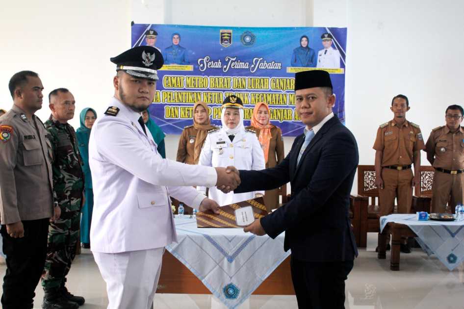 Pemerintah Kota Metro melaksanakan Serah Terima Jabatan (Sertijab) Camat Metro Barat dan Lurah Ganjar Asri sekaligus Pelantikan Ketua Tim Penggerak PKK Kecamatan Metro Barat dan Ketua Tim Penggerak PKK Kelurahan Ganjar Asri, berlangsung di Aula Kelurahan setempat, Selasa (06/01/2025).