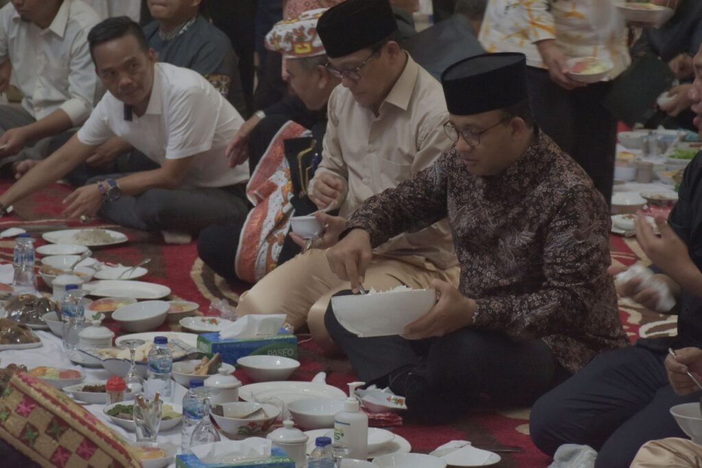 Masih dalam rangkaian peringatan Hari Jadi Ke-85 Kota Metro, Anies Baswedan melanjutkan kunjungan kerja, di Gedung Sesat Agung Bumi Sai Wawai, Jum’at 10/6/2022.