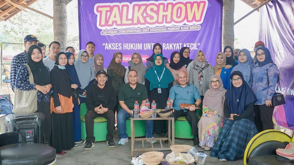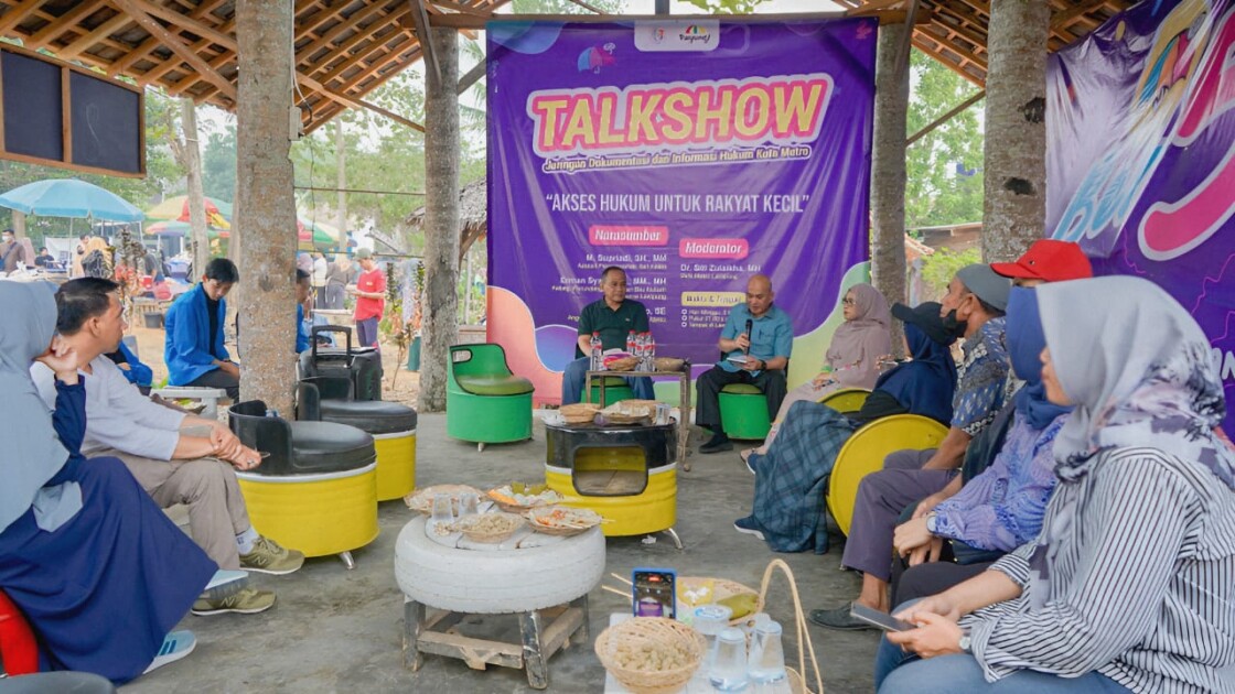 Minggu (05/11/2023), Asisten I Bidang Pemerintahan dan Kesra Pemerintah Kota Metro menjadi narasumber pada Talkshow Jaringan Dokumentasi dan Informasi Hukum, di Pasar Yosomulyo Pelangi (Payungi).
