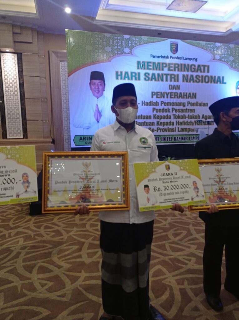 Pada kesempatan yang sama, turut dilakukan pemberian hadiah pada lomba kebersihan pondok pesantren. Juara 1 diraih Pondok Pesantren Insan Mulya Pesawaran, Juara 2 Pondok Darul A’mal, Kota Metro dan Juara 3 Pondok Modern Alfurqon.