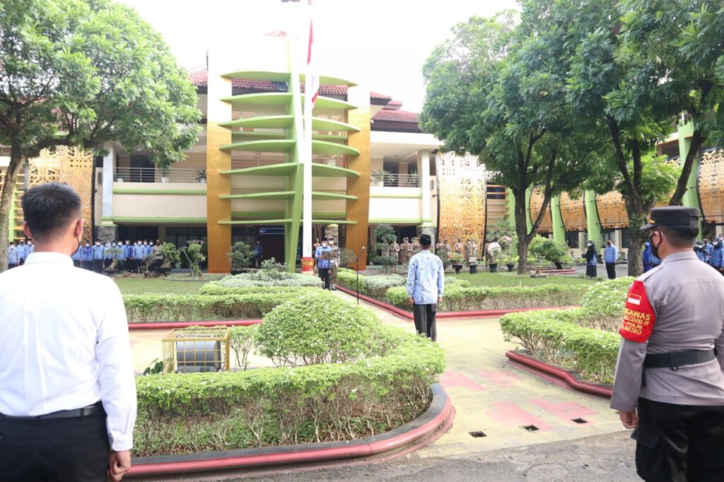 Pemerintah Kota Metro menggelar apel pagi, sekaligus penyerahan penghargaan kepada Polres Metro. Apel pagi ini berlangsung di halaman kantor Pemerintah Daerah Kota Metro, Senin (17/01/2022).