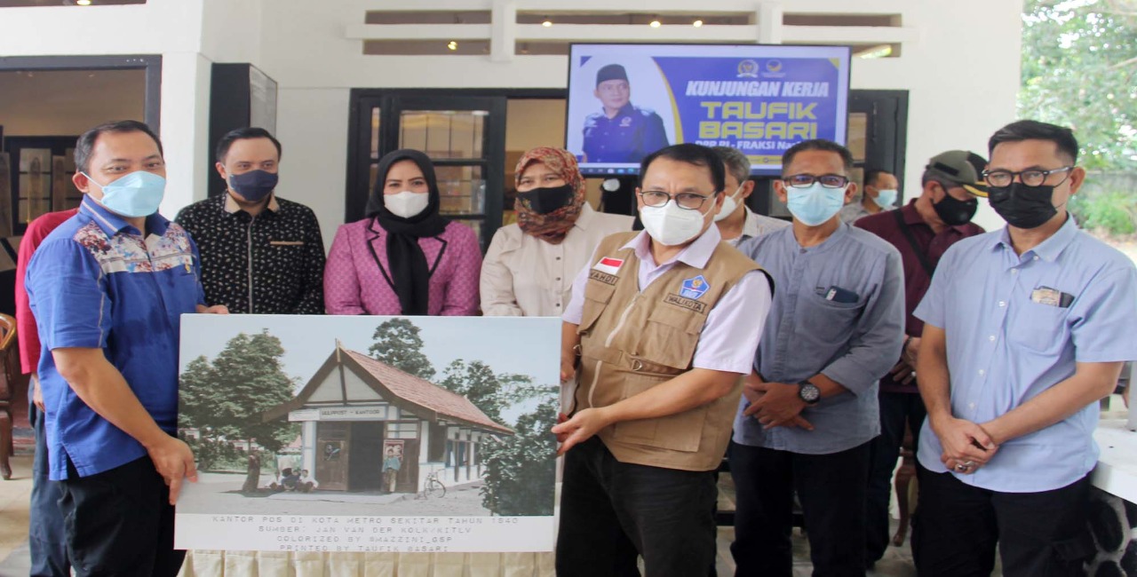Walikota Metro Wahdi berbincang bersama Taufik Basari (Komisi III DPR RI) serta Penayangan Film Dokter Swoning, di halaman Rumah Informasi Sejarah Dokter Swoning, Kota Metro, Minggu (17/10/2021). Pada perbincangannya, Wahdi mengatakan Rumah Informasi Sejarah (RIS) adalah lambang peradaban sebuah bangsa, dan tingkat kemajuan bangsa tercermin dari komitmen memelihara serta memperhatikannya. “Semakin peduli, semakin kuat, komitmennya di dalam menangani, memelihara, mengembangkan, dan memperhatikan Rumah Informasi Sejarah di Kota Metro, biasanya semakin tinggilah tingkat peradaban sebuah Kota itu,” kata Wahdi. Dalam kesempatan tersebut, Wahdi juga menyampaikan komitmen pemerintah untuk memajukan Rumah Informasi Sejarah Dokter Swoning serta memajukannya adalah tanda bahwa Metro mengalami kemajuan yang signifikan. Taufik Basari dalam hal ini, mengaku senang karena saat ini mulai banyak kesadaran dari masyarakat, dan para pemuda untuk mengunjungi RIS. Pihaknya mengatakan RIS nantinya bisa menjadi destinasi wisata yang rekreatif sekaligus mendidik. “Hampir seluruh wilayah Indonesia punya gairah baru bahwa RIS itu menjadi tempat destinasi wisata yang sehat, mendidik, dan memberi inspirasi kepada pengunjung dan yang diajak berkunjung. Terutama para peserta didik dan anak-anak yang ingin mendapatkan rekreasi, ingin mendapatkan suasana rekreatif, tapi juga menyehatkan,” ucap Taufik. Menurut Taufik, sarana dan prasarana di RIS perlu lebih variatif agar tidak membosankan. “Karena itu, ke depan, kita harus betul-betul melengkapi berbagai macam sarana dan prasarana RIS dan harus lebih variatif sehingga tidak membosankan. Dan kalau perlu, ada event-event tertentu setiap saat secara periodik sehingga memang selalu ada suasana inovatif, ada suasana yang baru,” tuturnya. Imbuhnya, Komisi III DPR RI tersebut juga menyampaikan bahwa atas nama DPR RI, saya mengucapkan terima kasih kepada semua pihak yang selama ini menekuni, menggeluti bidang permuseuman dalam kapasitas apa saja. Mulai kepala museum, pengelola, pemerhati, pemelihara, dan tentu saja juga para penggemar untuk berkunjung di museum,” ucap Taufik. Tidak hanya itu saja, Taufik juga memberikan Gong yang berusia 70 tahun, dan juga lukisan tempat-tempat di Kota Metro pada zaman dahulu. (ins/bgs)