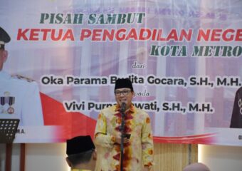Walikota Metro dr. Wahdi, dan Wakil Walikota Metro Qomaru Zaman, menghadiri acara pisah sambut Ketua Pengadilan Negeri (PN) Metro berlangsung di Guest House, Rabu Malam (10/01/2024) Diketahui, Ketua Pengadilan Negeri Kota Metro yang baru adalah Vivi Purnamawati S.H,M.H menggantikan Oka Parama Budita Gocara, S.H,M.H. Dalam sambutannya, Walikota Metro Wahdi memberikan selamat kepada ketua Pengadilan Negeri Kota Metro yang baru, menurutnya untuk kedepannya hubungan yang sudah terjalin dengan baik selama ini dapat terus dipertahankan. “Semoga ke depannya kita masih bisa tetap berkoordinasi baik Antara Pengadilan Negeri Metro dengan Pemerintah Kota Metro dan terus terjaga dengan baik,” katanya. Lanjutnya, Wahdi juga menjelaskan bahwa Pemerintah Kota Metro akan terus berkomitmen untuk mendukung program kerja Ketua Pengadilan Negeri Kota Metro yang baru. “Kami pemerintah Kota Metro akan terus mendukung dan bersinergi kedepannya terhadap semua program yang akan dijalankan, dan silahturahmi tentu akan terus dilakukan dengan baik,” terangnya. Sementara itu, Oka Parama Budita Gocara dalam kesempatan ini mengungkapkan terima kasih atas perpisahan yang diberikan. Yunizar mengakui, bahwa sinergitas yang dibentuk bersama Forkopimda Kota Metro sangat erat, sehingga pembangunan berjalan dengan baik. “Terima kasih atas kehadiran Bapak Walikota dan Wakil Walikota yang selalu merangkul jajaran unsur samping dalam berbagai acara. Untuk itu saya pesan kepada Ketua PN yang baru agar dapat beradaptasi cepat dalam membangun Kota Metro untuk lebih baik lagi,” ujarnya. Ketua Pengadilan Negeri Kota Metro, Vivi Purnamawati S.H,M.H, menyampaikan komitmen untuk merencanakan program kerja yang telah direncanakan untuk kedepannya. Menurutnya, semua itu hanya dapat dicapai jika program kerja yang ada didukung oleh seluruh pejabat dan karyawan di Lingkungan Kantor Pengadilan Negeri Kota Metro. “Tugas yang diemban sangat berat, terlebih lagi untuk mempertahankan kinerja selama ini akan lebih berat lagi daripada memulai sesuatu yang baru. Saya akan berusaha keras untuk lebih baik lagi di masa yang akan datang,” katanya. (bgs/ysf)