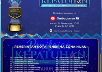 Pemerintah Kota Metro berhasil meraih nilai tertinggi terkait kepatuhan penyelenggaraan pelayanan publik se-Provinsi Lampung. Penilaian ini dilakukan oleh lembaga independen Ombudsman Republik Indonesia. Untuk diketahui, Ombudsman Republik Indonesia memiliki fungsi mengawasi penyelenggaraan pelayanan publik yang diselenggarakan oleh Penyelenggara Negara di Pemerintah Pusat maupun Pemerintah Daerah. Dalam rangka menjalankan fungsi tersebut, telah dilaksanakan Penilaian Kepatuhan Penyelenggaraan Pelayanan Publik Tahun 2023terhadap Kota Metro bersama Kementrian/Lembaga/Daerah lainnya dan Kota Metro mendapatkan predikat Kepatuhan Tinggi yang akan disematkan dalam acara yang bertajuk “Penguatan Pengawasan Pelayanan Publik dan Penyerahan Hasil Penilaian Kepatuhan Tahun 2023” Hari Selasa, 19 Desember 2023 di Hotel Grand Mercure Pelita, Enggal, Bandar Lampung. Adapun agenda acara tersebut, yang pertama Refleksi Pelayanan Publik Tahun 2023 di Provinsi Lampung, dan kedua Penyerahan Hasil Penilaian Kepatuhan Tahun 2023 sekaligus Penganugerahan terhadap Predikat Kepatuhan Tinggi dan Testimoni. Atas raihan ini, Walikota Metro, dr. H. Wahdi Siradjuddin, Sp.OG(K), M.H berterimakasih dan memberikan apresiasi kepada semua pihak yang sudah bergotong-royong mewujudkan pelayanan publik yang terbaik untuk masyarakat Metro. “Tentunya kami Pemerintah Kota Metro, mengucapkan terimakasih kepada Forkopimda, DPRD Kota Metro, Stakeholder, Swasta, dan seluruh lapisan masyarakat, yang telah bersama-sama mewujudkan pelayanan terbaik untuk kita nikmati bersama, salah satu wujudnya adalah melalui Mal Pelayanan Publik (MPP),” kata Wahdi. Di kesempatan yang sama, Zaki Mubaroq Kepala Bagian Organisasi Setda Kota Metro menambahkan, Penilaian Kepatuhan Penyelenggaraan Pelayanan Publik oleh Ombudsman RI, untuk Kota Metro meraih Nilai 80, 85, masuk Zona Hijau dan Kategori (B). “Kota Metro meraih Nilai tertinggi se provinsi Lampung. Tahun lalu kita di zona kuning urutan 13 terbawah se Provinsi Lampung. Tahun ini yg masuk zona hijau di Lampung cuma Metro dan Waykanan. Tentunya ada peningkatan yang signifikan yang diraih Kota Metro,” katanya. (yus)