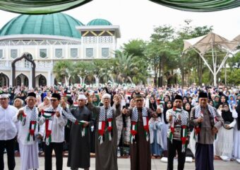 Walikota Metro dr. Wahdi dan Wakil Walikota Metro Drs. Qomaru, menghadiri acara Istighosah untuk Palestina, yang dilaksanakan Di Pelataran Masjid Taqwa, Minggu 5/10/2023. Bersama jajaran Forkopimda, ormas islam, organisasi kepemudaan dan seluruh elemen masyarakat di Kota Metro, Pemkot Kota Metro menggalang donasi. “Kegiatan yang diselenggarakan ini sangat baik dan penting ditengah gejolak politik dan keamanan yang terjadi di Kawasan Timur Tengah. Utamanya adalah akibat konflik Palestina-Israel yang sampai saat ini masih terus berlangsung. Akar masalah konflik Palestina-Israel adalah penjajahan, perampasan hak-hak rakyat Palestina dan perjuangan mereka untuk mendapatkan kemerdekaan bagi bangsa Palestina,” ucap wahdi. Wahdi mengingatkan kepada semua soal pembukaan Undang-Undang Dasar 1945 yang secara jelas dan gamblang menolak segala bentuk penjajahan di muka bumi. “Dukungan kepada kemerdekaan Palestina merupakan amanat konsitusi Indonesia dan sekaligus jantung politik luar negeri Indonesia yang akan terus menjadi perhatian besar sampai kemerdekaan Palestina berhasil diwujudkan. Kita konsisten membela kemerdekaan Palestina dan menolak penjajahan Israel karena melaksanakan ketentuan konstitusi, Pembukaan UUD 1945,” lanjutnya. Selain dari itu, menurut Wahdi kegiatan ini khususkan doa bersama agar kemerdekaan Palestina segera terwujud. “Semoga Allah SWT segera mengabulkan doa kita dan memberikan kemerdekaan penuh kepada saudara-saudara kita di Palestina. Dan kepada seluruh elemen masyarakat, organisasi, lembaga dan sebagainya yang telah berinisiatif menggalang dana untuk Palestina, saya ucapkan terima kasih. Semoga Allah meridhoi setiap langkah dan kebaikan kita bersama,” tutupnya. Dalam rangkaian yang diinisiasi oleh AMSA ini, sebelumnya juga digelar acara lomba mewarnai bagi anak-anak dan panggung komunitas serta “Konser Amal”.(bgs/yus)