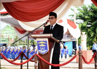 Walikota Metro dr.Wahdi Siradjuddin, Sp.OG(K).,M.H memimpin upacara dalam rangka memperingati Hari Pahlawan ke-78, 10 November 2023, yang berlangsung di Lapangan Samber Kota Metro, Jumat (10/11/2023). Upacara Peringatan Hari Pahlawan yang berlangsung dengan khidmat dan tertib ini jatuh pada tanggal 10 November yang dapat dijadikan momentum untuk mengenang kembali jasa dan perjuangan para pahlawan di masa lalu momen ini juga untuk menanamkan nilai-nilai kepahlawanan kepada generasi sekarang. Di kesempatan ini, Walikota Metro mengumandangkan amanat Menteri Sosial RI dengan mengusung tema “Semangat Pahlawan untuk Masa Depan Bangsa dalam Memerangi Kemiskinan dan Kebodohan”, tema ini diangkat melalui renungan yang mendalam untuk menjawab ancaman penjajahan modern yang kian nyata. “Maka dari itu mengingat bangsa ini adalah bangsa yang kaya akan begitu banyak sumber daya alam yang luar biasa seperti tanah yang subur, hasil laut yang melimpah, kandungan bumi yang menyimpan beragam mineral,” katanya. “Ini adalah tantangan yang sesungguhnya bagi generasi penerus untuk mengelola kekayaan alam dan juga potensi penduduk Indonesia bagi kejayaan Bangsa dan bernegara,” tambah Wahdi. Dalam memperingati hari pahlawan ini pun kita berada dalam perjuangan besar menaklukkan Ancaman dan Tantangan yang nyata- nyata berada di hadapan kita. Semangat untuk berantas kebodohan dan perangi kemiskinan dapat dilihat dan dirasakan denyutnya di seluruh pelosok Negeri. “Semangat yang menyatukan kita menolak kalah dan menyerah pada keadaan. Menyatukan kita dalam upaya mewujudkan kehidupan kebangsaan yang bersatu, berdaulat, adil, dan makmur, serta mewujudkan masa depan yang lebih baik,” tambah Wahdi. Dalam acara ini tampak di hadiri Wakil Walikota Metro, Ketua DPRD, para Forkopimda, Sekertaris Daerah, para Staf Ahli, para Asisten Sekda, para Kepala OPD, Para Ketua Instansi Vertikal, para Rektor Perguruan Tinggi Kota Metro, Ketua Organisasi Kepemudaan, Ketua Organisasi Wanita serta para peserta Upacara. (bsr/yus)