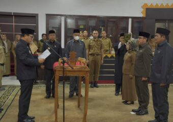Walikota Metro Wahdi Siradjuddin melantik dan mengangkat sumpah jabatan struktural pada Jabatan Pimpinan Tinggi Pratama (JPTP) di lingkungan Pemerintah Kota Metro, di Aula Pemda Kota Metro, Senin (27/03/2023). Pada pelantikan dan pengangkatan sumpah jabatan yang dilaksanakan hari ini, terdapat 3 orang pegawai yang akan diangkat ke dalam Jabatan Pimpinan Tinggi Pratama. Pejabat yang dilantik yaitu AC Yuliwati sebagai Staf Ahli II, Ade Erwansyah sebagai Sekwan, dan Eko Hendro Saputro sebagai Kadis Kesehatan.Dalam kesempatan ini, Walikota Metro memberikan selamat kepada para pejabat yang baru saja dilantik. “Semoga jabatan yang di emban sekarang ini dapat di pertanggung jawabkan yang langsung bekerja sesuai tupoksinya masing-masing. Tak lupa dengan dilaksanakannya kegiatan ini sebagai salah satu upaya meningkatkan kinerja, disiplin dan meneguhkan tekad untuk menjadi ASN yang profesional, baik dalam menjalankan tugas-tugas kedinasan, maupun sebagai anggota masyarakat,” ucap Walikota Metro. Wahdi juga menekankan kembali kepada para ASN, terlebih kepada yang baru saja dilantik, untuk melaksanakan tugas sebagai Abdi Negara dan Abdi Masyarakat semakin lama akan semakin berat, serta pengawasan akan semakin ketat. “Tantangan baru pasti akan muncul seiring dengan tuntutan dari masyarakat yang mengingikan respon pelayanan yang cepat, tepat dan transparan. Diharapkan dengan jabatan baru bisa menjalankan amanahnya,” pungkas Wahdi. (Gt/Sr)