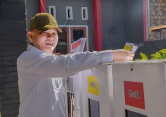 Dengan mengunakan baju berwarna putih dan celana panjang berwarna biru, Wakil Wali Kota Metro Qomaru Zaman, mendatangi Tempat Pemungutan Suara (TPS) 04 yang berlokasi di Jl. Jeruk RT 07 RW 02 Tejo Agung untuk melakukan pencoblosan, pada pukul 09.00 WIB pagi . Pada kesempatan tersebut, Qomaru Zaman juga menyapa seluruh masyarakat yang hadir di TPS 04 untuk menunggu panggilan melakukan pencoblosan surat suara yang terdiri dari 5 kertas yaitu Pemilihan Umum Presiden dan Wakil Presiden RI, Daerah Pemilihan DPR RI, Daerah Pemilihan DPD RI, Daerah Pemilihan DPRD Provinsi dan DPRD Kabupaten/Kota. Saat ditemui usai melakukan pencoblosan Qomaru Zaman mengatakan bahwa 14 Februari 2024 ini, merupakan hari dimana masyarakat akan menggunakan hak pilihnya sebagai warga negara Indonesia. Sebagai Wakil Wali Kota Metro, dia juga mengajak seluruh masyarakat yang telah terdaftar sebagai pemilih di Kota Metro, agar dapat datang berbondong-bondong ke TPS yang telah ditentukan di masing-masing wilayah. “Saya keliling ke beberapa TPS kurang lebih ada 27 atau 28 TPS, saya memperhatikan alangkah hebatnya Kota Metro ini. Keluarganya, partisipasi masyarakat, untuk melaksanakan Pemilu ini dengan baik, dengan penuh keramahan, dan ketulusan, “ujarnya, Rabu (14/02/2024). Qomaru Zaman juga mengucapkan rasa syukur pemilu yang dilakukan di Kota Metro bisa berjalan dengan aman dan kondusif tanpa ada masalah selama pelaksanaan berlangsung. “Oleh karena itu, saya yakin dan percaya sampai akhir pemilu, penghitungan Kota Metro aman dan kondusif. Saya perhatikan beberapa warga dengan penuh kesabarannya menunggu antrian tidak ada yang rebut-ribut, luar biasa,”ungkapnya. Berdasarkan data diketahui, ada 289 orang terdaftar sebagai pemilih tetap pemilihan umum tahun 2024 di TPS 04 Tejo Agung yang terdiri dari laki-laki sebanyak 152 orang dan perempuan sebanyak 137 orang. (Yl/Sr)