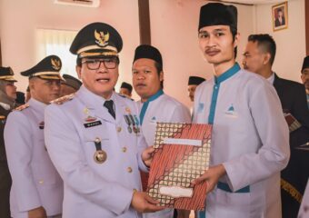 Wakil Walikota Metro Qomaru mengukuhkan anggota Pasukan Pengibar Bendera Pusaka (Paskibraka) Kota Metro Tahun 2023 bertempat di Gedung Sessat Agung Bumi Sai Wawai Kota Metro, Senin (15/08/2023). Para anggota Paskibraka di Kota Metro tersebut berjumlah 31 orang yang terdiri dari 16 laki-laki dan 15 perempuan, serta 3 orang yang dikirim untuk mengikuti Paskibraka tingkat Provinsi. Purna paskibraka Edwin Syam, menyampaikan bahwa para anggota didapat dari beberapa SMA/SMK se-Kota Metro melalui tahapan seleksi. “ Untuk pasukan pengibar bendera ini kami mencari di sekolah menengah atas dan kejuruan di Kota Metro dan melewati serangkaian prosesi seleksi serta dilatih oleh para anggota dari Kodim 0411/KM dan Polres Metro,” ungkapnya. Dalam kesempatan ini, Wakil Walikota Metro Qomaru Zaman, berterima kasih kepada para pembina yang telah mendidik anggota Paskibraka selama 2 bulan ini. “Saya berterima kasih kepada pembina, pelatih yang dengan sabar menerapkan kedisiplinan, dan saya berharap kepada mereka selalu sehat, dan nanti pada waktunya dapat menjalankan tugas dengan sebaik-baiknya,” ujar Qomaru. (Dns/Sr)