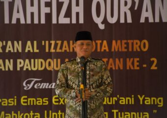 Wakil Walikota Metro Qomaru Zaman menghadiri acara Wisuda Tahfidz dan Pelepasan Santri Paud Rumah Qur’an Al’ -Izzah Kota Metro berlangsung di Wisma Haji Al- Khoiriyah, Minggu 25/06/2023. Dalam kesempatan ini Qomaru Zaman menyampaikan, Kota Metro ini betul-betul sedang mempersiapkan generasi muda hebat kedepan, dengan menghadirkan hafidz dan Tahfiz Al-quran lima sampai lima belas tahun ke depan. “Anak- anak muda itu kalo di bimbing dan dibina hafalan Qur’an nya luar biasa. Pemerintah Kota Metro sangat mengapresiasi terhadap rumah-rumah tahfisz yang ada di Kota Metro ini, termasuk TPA dan lain sebagainya serta sekolah – sekolah yang menyelenggarakan kegiatan Tahfidz Qur’an,” katanya. Qomaru juga menekankan bahwa, kedepan harus di siapkan orang – orang hebat hadir dari Kota Metro. Pemerintah sendiri mensupport dengan mengumpulkan pembina- pembina rumah Qur’an untuk di berikan motivasi supaya lebih greget dan semangat lagi untuk menghebatkan kota ini. Direktur Rumah Qur’an Al’Izzah, menyampaikan bahwa hari ini ada 71 santri yang di Wisuda dan di antaranya ada 18 santri PAUD. “Saya mengucapkan terima kasih kepada Pemerintah Kota Metro yang telah hadir dalam acara ini dan terlebih mensupport kegiatan kami”, ucapnya. (Dns/Sr)