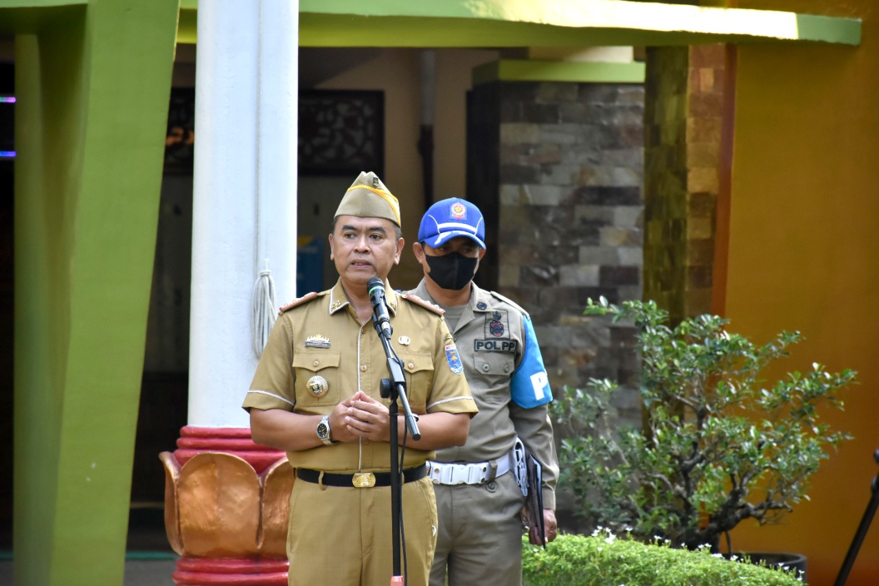 “Mari kita semua mengibarkan bendera merah putih dan umbul-umbul satu tiang penuh, selama satu bulan per tanggal 1 agustus hingga 1 September mendatang,” ujar Bangkit saat pimpin apel mingguan.