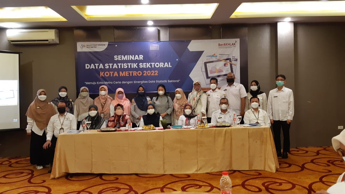 BPS Kota Metro mengadakan Seminar Data Statistik Sektoral Kota Metro Tahun 2022 di Aidia Grande, Rabu (9/2/2022) dengan mengambil tema “Menuju Kota Metro Ceria Dengan Sinergisitas Data Statistik Sektoral”, dengan peserta merupakan penanggung jawab data di OPD Kota Metro dan beberapa instansi vertikal.