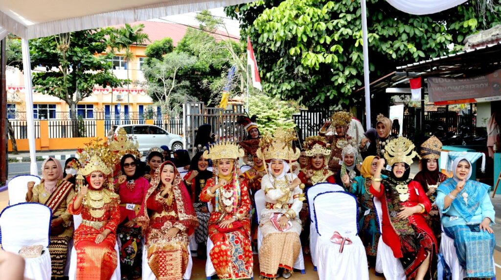 Peringati Hari Ulang Tahun (HUT) ke-77 Kemerdekaan Republik Indonesia, Dharma Wanita Persatuan (DWP) Kota Metro gelar Parade Nusantara, di halaman Rumah Informasi Sejarah (RIS) Metro, Rabu 17/8/2022.