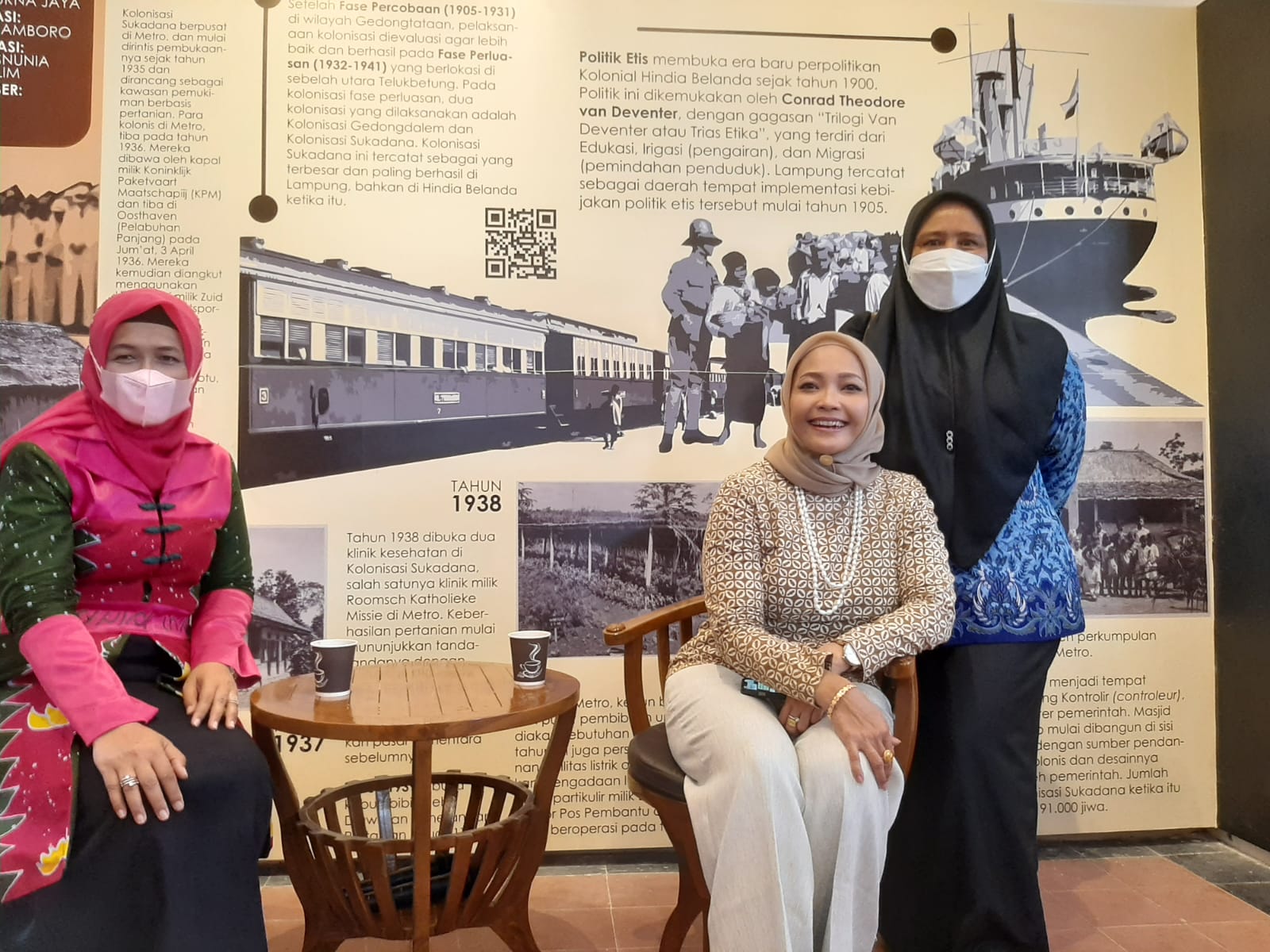 Ketua Dharma Wanita Kementrian Agama Eny Retno Yaqut mengunjungi Rumah informasi Sejarah Metro, Jumat (17/12/2021).