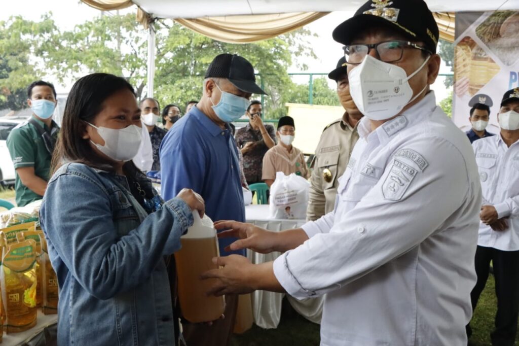 Gubernur Lampung Arinal Djunaidi membuka Kegiatan Pasar Murah Bersubsidi Bahan Pokok Bulan Suci Ramadhan Dan Hari Raya Idul Fitri 1443 H/2022 M yang berlangsung di Lapangan Kelurahan Mulyojati 16c Kota Metro, Jumat (22/04/2022).