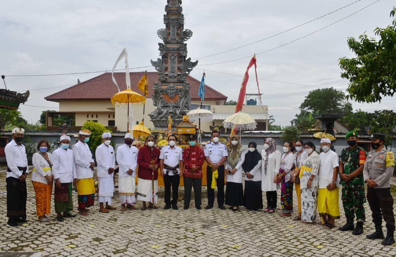 Jelang Hari Raya Nyepi Saka 1944 umat Hindu, Walikota Metro Wahdi Sirajuddin memberikan sambutan pada kegiatan Melasti (rangkaian perayaan Nyepi) umat Hindu Kota Metro Tahun 2022, di Pura Giri Natha Kota Metro, Rabu 2/3/2022.