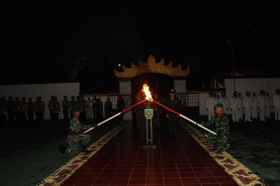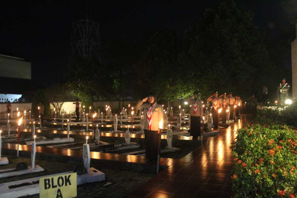 Upacara Apel Kehormatan dan Renungan Suci dalam rangka Peringatan HUT RI ke-80 yang dipimpin oleh Inspektur Upacara Dandim 0411/KM, Letkol Inf Noval Darmawan,S.H.,M.I.P., di Taman Makam Pahlawan Kemala Nusantara Kota Metro, Sabtu Malam (16/08/2025).