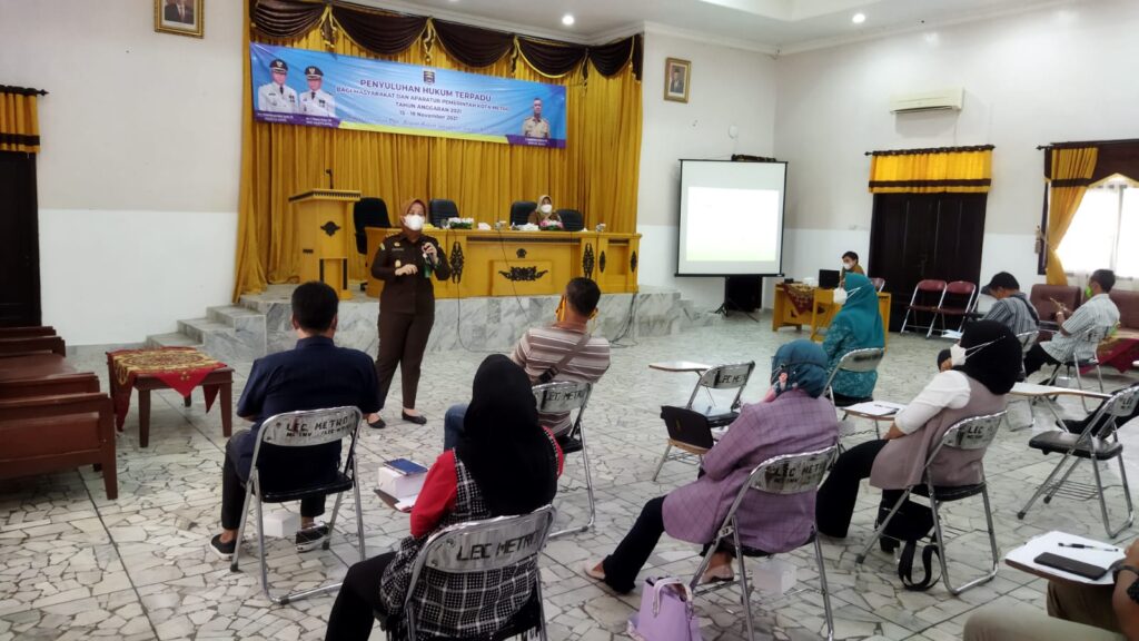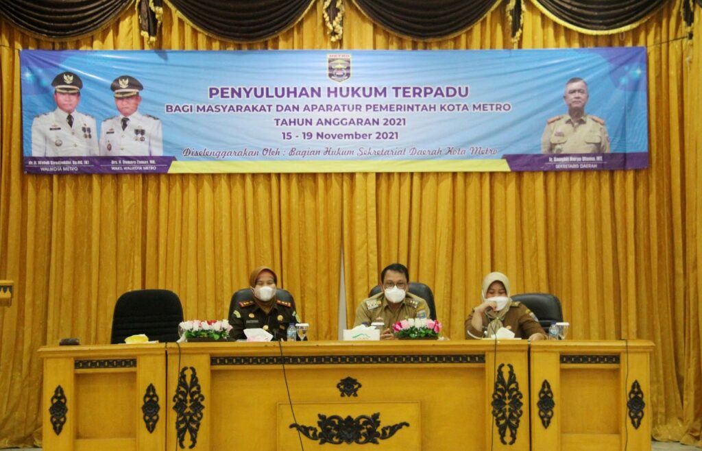 Pemerintah Kota Metro menyelenggarakan penyuluhan hukum terpadu, bagi masyarakat dan aparatur pemerintah yang leading sektor dari Bagian Hukum Kota Metro, di Aula LEC Kartikatama Kota Metro, Selasa (16/11/2021).