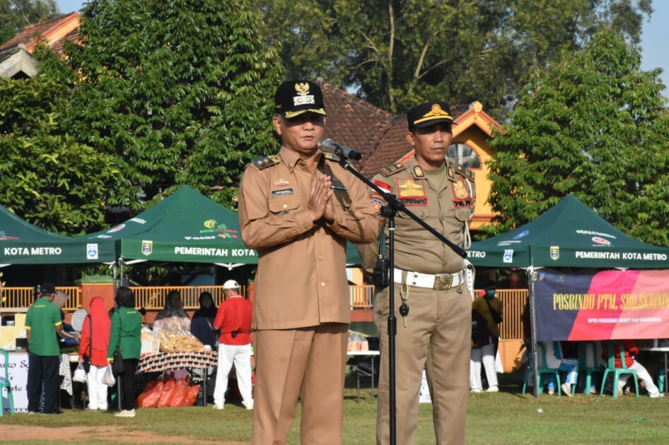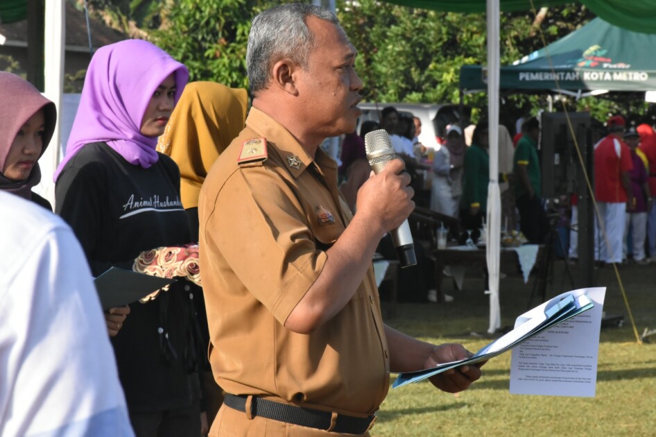 Wakil Walikota Metro pimpin Apel Pelepasan Petugas Pemeriksa Kesehatan Hewan Qurban, sekaligus Launching Gelar Pangan Murah Serentak Nasional Gertapaga di Kota Metro, yang berlangsung di Lapangan Banjarsari, Metro Utara, Senin (26/06/2023).