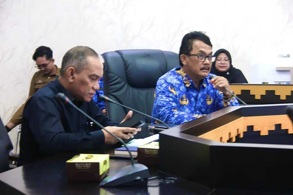 Turut hadir Kadisnakertrans, Camat dan Lurah Se-Kota Metro beserta para tamu undangan. Rapat dilaksanakan di ruang OR Sekda Kota Metro, Senin (28/04/2025).