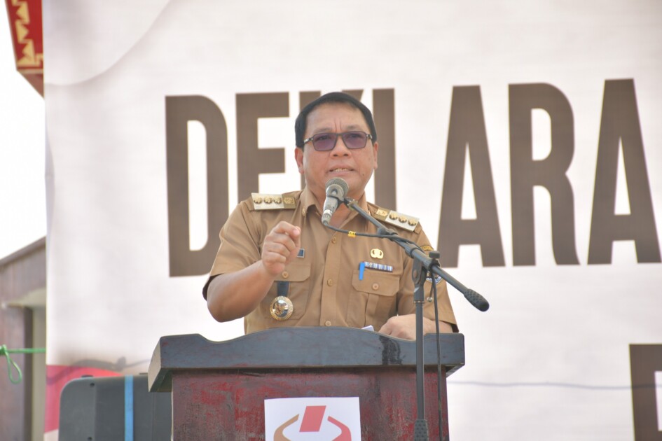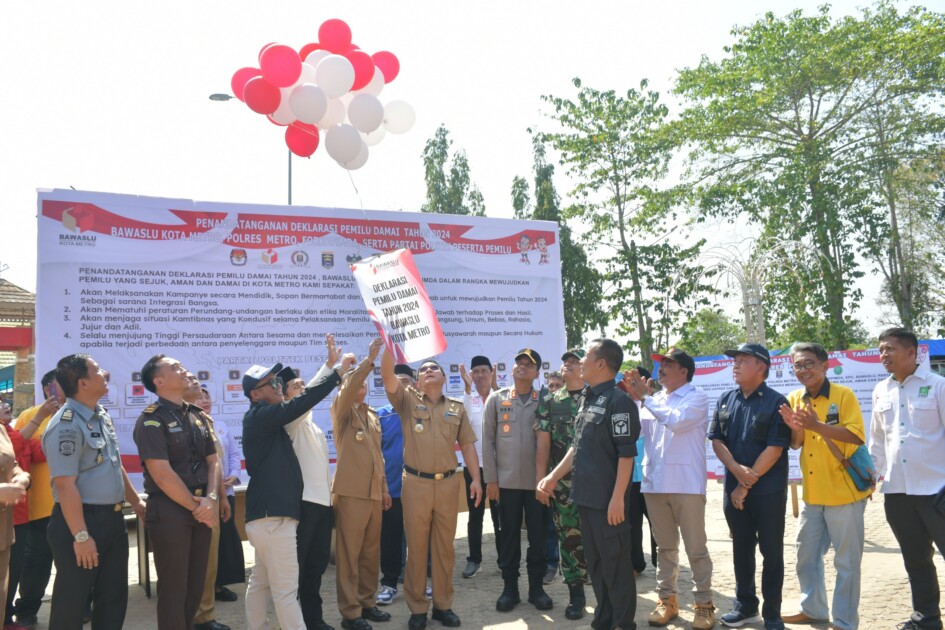 Walikota Metro dan Wakil Walikota Metro menghadiri Deklarasi Kampanye Damai Pemilu 2024 di Kota Metro yang berlangsung di Lapangan Samber Kota Metro pada Selasa 21/11/2023.