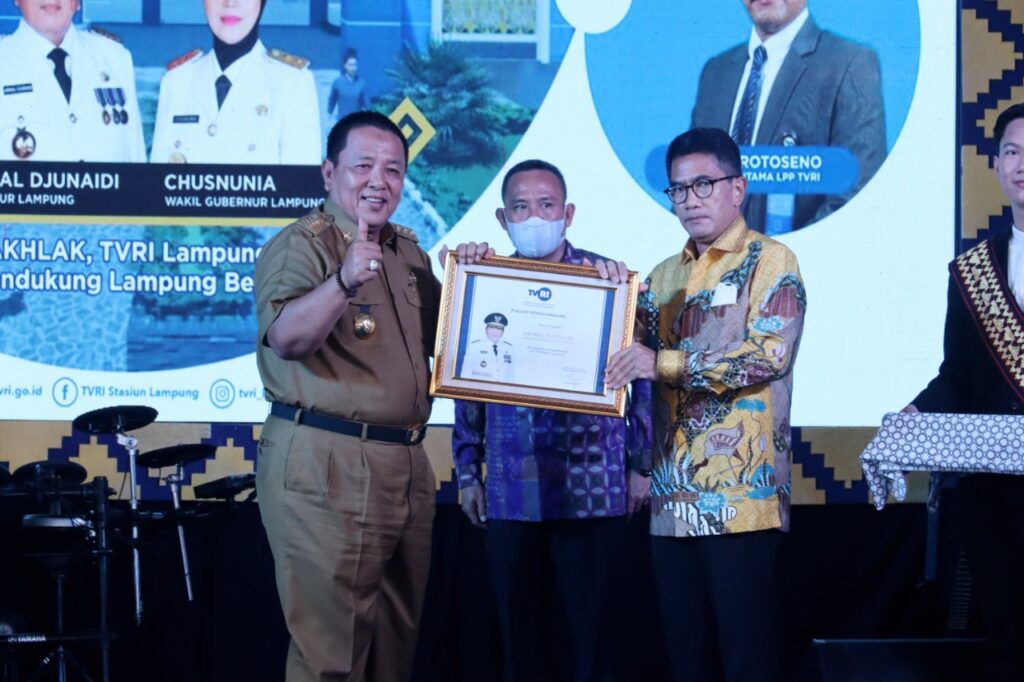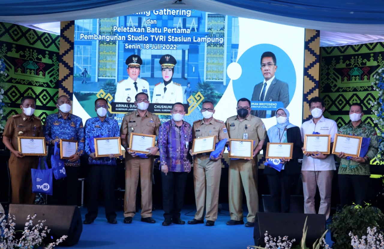Acara diakhiri dengan pemberian piagam penghargaan atas partisipasi dalam memberikan kontribusi kerjasama Penerimaan Negara Bukan Pajak (PNBP) di TVRI Stasiun Lampung, yang diberikan oleh Direktur Utama LPP TVRI Lampung Iman Brotoseno kepada 10 Mitra Kerjasama PNBP. Dan dilanjutkan dengan peletakan batu pertama yang dilakukan oleh Gubernur Lampung Arinal Djunaidi. (Agp/Yl)