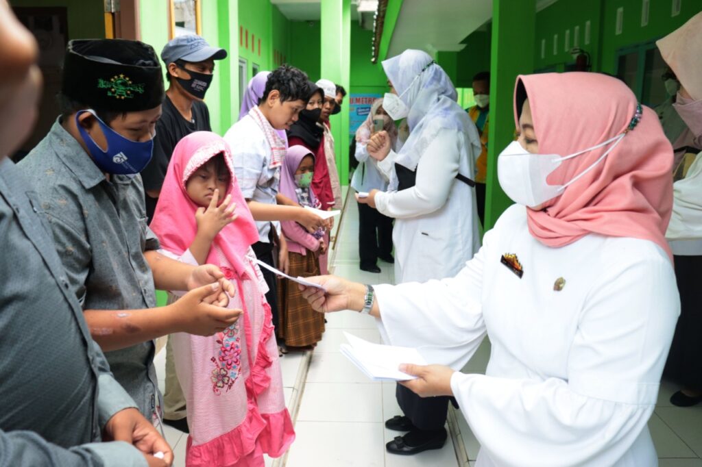 Ketua Lembaga Koordinasi Kesejahteraan Sosial (LKKS) Kota Metro, Silfia Naharani mengunjungi sekaligus melihat kondisi anak-anak disabilitas yang berada di Sekolah Luar Biasa (SLB) Harapan Ibu di Jalan Cempedak 21 C, Kecamatan Metro Pusat, Rabu 06/04/2022.