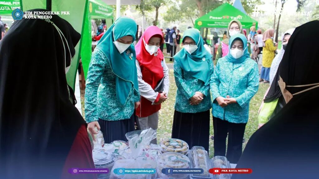 Ketua Tim Penggerak PKK kota Metro didampingi oleh jajaran pengurus menghadiri Pasar Agro Ceria di Lapangan Mulyojati Kecamatan Metro Barat.