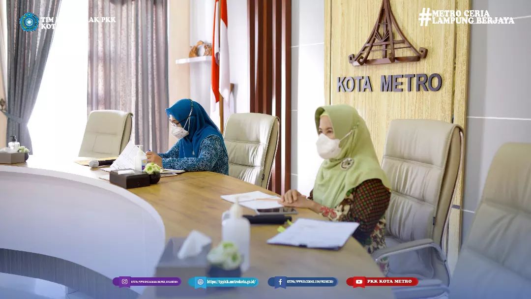 Ketua Tim Penggerak PKK Kota Metro Silfia Wahdi didampingi jajaran sekretaris menghadiri rapat persiapan APEKSI pada sesi Virtual Talkshow Peran Istri Walikota.