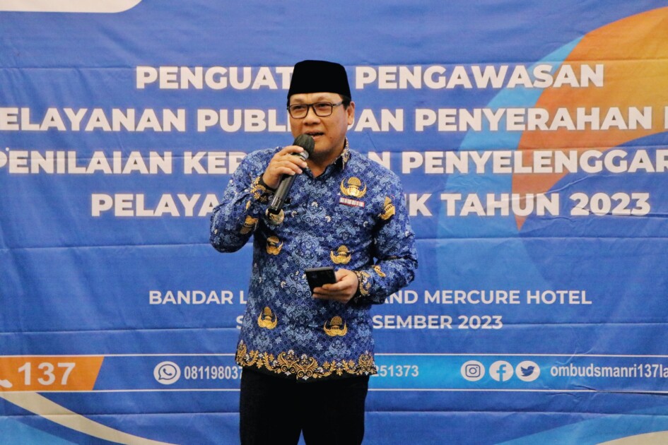 Kepala Ombudsman RI Perwakilan Lampung Nur Rakhman Yusuf menyampaikan bahwa ada 2 kegiatan yang diadakan hari ini, yaitu terkait refleksi akhir tahun dan hasil penilaian kepatuhan tahun 2023.