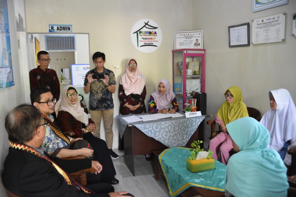 Kunjungan lapangan ini berfokus untuk mengkonfirmasi dan menggali informasi lebih dalam lagi dari perspektif stakeholder terkait terhadap pencapaian sasaran pembangunan daerah dan inovasi daerah yang menjadi unggulan. Lokasi yang menjadi target kunjungan diantaranya, Puskesmas Ganjar Agung, Puspaga Gaharu , RSUD A. Yani, dan Peternakan kambing Telaga Riski di Kelurahan Yosodadi.