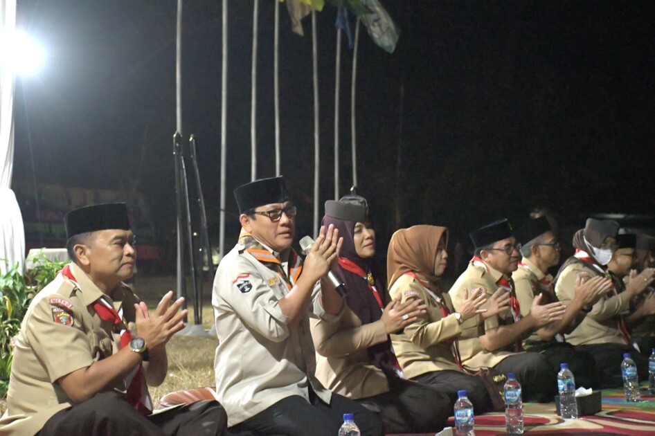 Walikota Metro dr. Wahdi Siradjuddin, Sp.OG(K) didampingi Sekda Metro Ir. Bangkit Haryo Utomo, menghadiri malam keakraban Kemah Bhakti dalam rangka Hari Pramuka ke-62 Tahun 2023, acara berpusat di Lapangan Karang Rejo, Metro Utara, Kota Metro, Jum’at (22/9/2023)