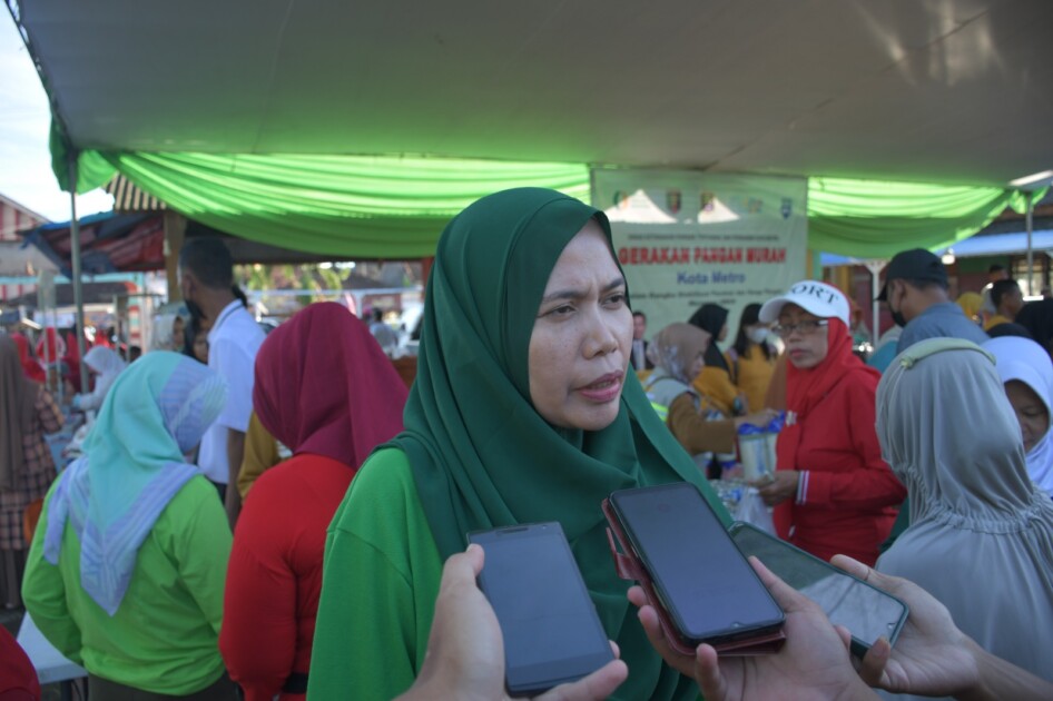 “Disini kita menjual beras, bawang merah, telor dan masih banyak lagi. Tentunya harga disini lebih murah dari harga di pasar. Selain gerakan pangan murah untuk penetrasi pasar, melalui kegiatan ini bertujuan menanggulangi inflasi di Kota Metro”, katanya.