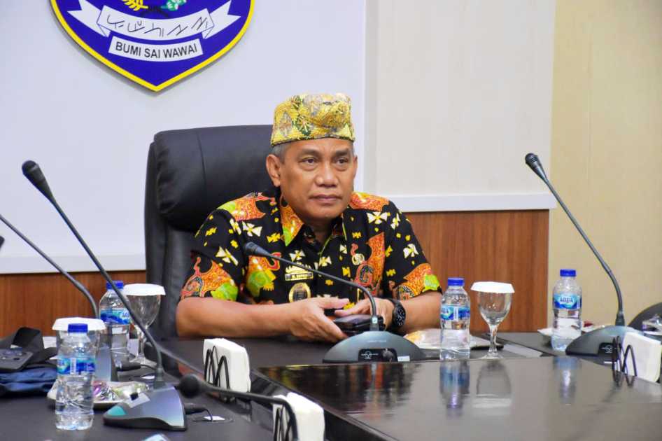 Pemerintah Kota Metro mengikuti kegiatan serah terima hadiah bantuan kemasyarakatan berupa hewan kurban dari Presiden Republik Indonesia H. Prabowo Subianto secara virtual di Ruang Rapat Wali Kota Metro, Kamis (5/6/2025).