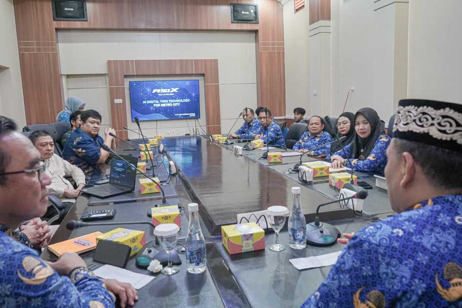 Pemerintah Kota Metro membuka peluang besar dalam pengembangan teknologi pemerintahan berbasis digital setelah menerima kunjungan manajemen PT ASIK Indonesia Cerdas, yang menawarkan kerjasama pengembangan konsep Smart City dan Digital Twin City untuk Kota Metro yang berlangsung di Ruang Kerja Wali Kota Metro, Kamis (17/07/2025).