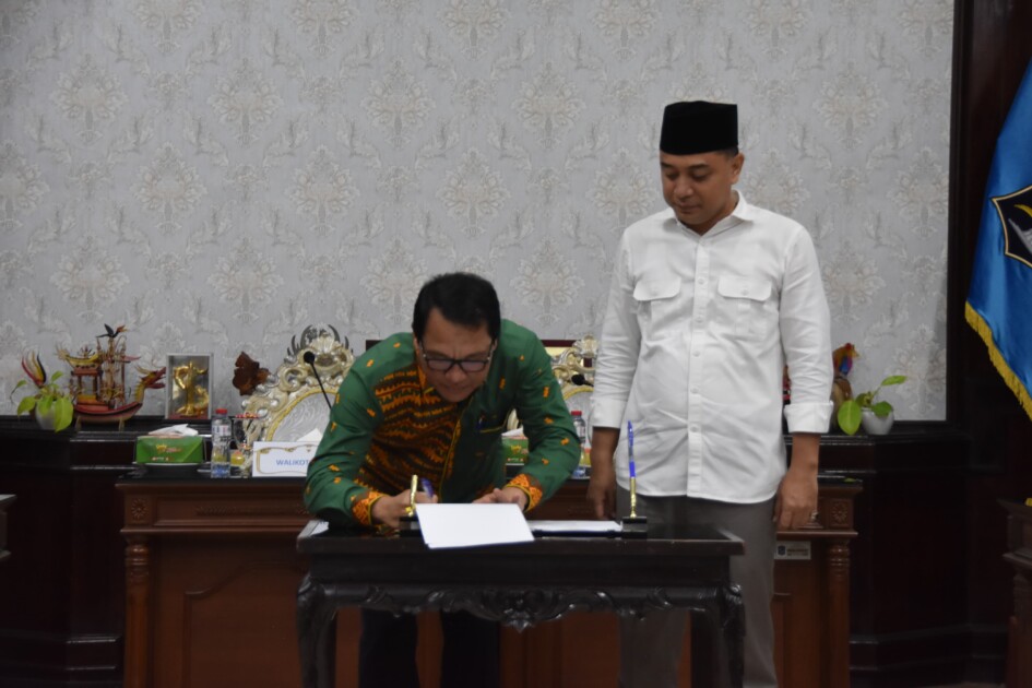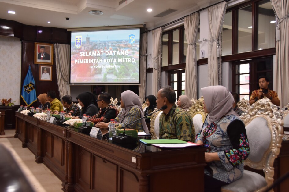 Pemerintah Kota Metro dan Pemerintah Kota Surabaya melakukan penandatanganan perjanjian kerjasama atau MoU (memorandum of understanding) mengenai Jaringan Lintas Perkotaan yang berlangsung di Ruang Sidang Walikota Surabaya, Jumat (23/02/2024).