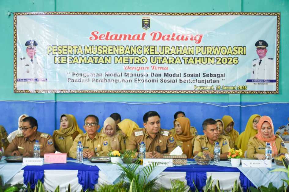Pemerintah Kota Metro menggelar Musyawarah Perencanaan Pembangunan (Musrenbang) yang menjadi forum strategis dalam menjaring aspirasi masyarakat sebagai dasar penyusunan rencana pembangunan daerah tahun 2026 hingga 2027,berlangsung di Kelurahan Purwo Asri, Kecamatan Metro Utara, pada Senin (19/01/2026).