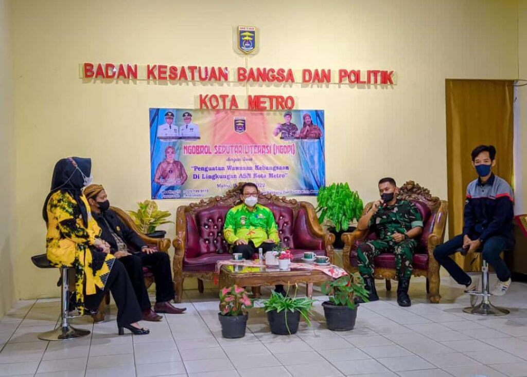Walikota Metro Wahdi menjadi narasumber dalam program acara NGOPI (Ngobrol Seputar Literasi) terkait Penguatan Wawasan Kebangsaan di Lingkungan ASN Kota Metro, yang diselenggarakan oleh Dinas Perpustakaan dan Kearsipan Daerah (Dispusarda) Kota Metro bekerjasama dengan Badan Kesatuan Bangsa dan Politik (Kesbangpol) Kota Metro secara daring melalui Zoom Meeting dan Live Streaming Youtube Pemerintah Kota Metro, Jumat (11/03/2022).