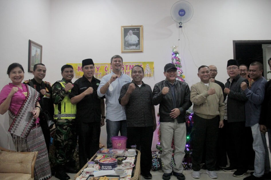 Walikota Metro dr. Wahdi bersama rombongan melakukan kunjungan untuk memantau kondisi Natal dan menjelang Tahun Baru (Nataru) pada malam Misa Natal.