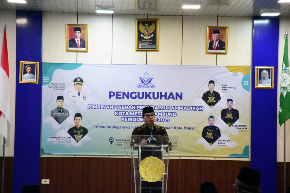 Dalam rangka melanjutkan estafet kepemimpinan, Pimpinan Daerah Pemuda Muhammadiyah (PDPM) Kota Metro, menyelenggarakan pengukuhan untuk periode 2023/2027. Acara digelar di Aula Gedung HI Kampus I Universitas Muhammadiyah Metro pada Sabtu (20/04/2024) malam.