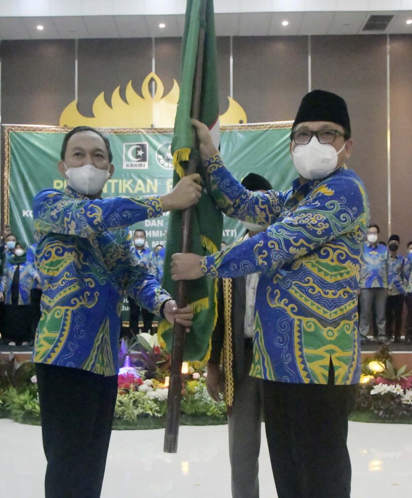 Pelantikan pengurus Pimpinan Majelis Daerah Korps Alumni Himpunan Mahasiswa Islam (MD-KAHMI) dan Forum Alumni HMI-WATI (FORHATI) berlangsung di Gedung Sesat Agung Bumi Sai Wawai, Rabu (15/12/2021). Sebelumnya, Walikota Metro Wahdi beserta anggota KAHMI melakukan peletakan batu pertama untuk pembangunan gedung sekretariat HMI Cab Metro yang berlokasi di Jl Abri, Iringmulyo Metro Timur.