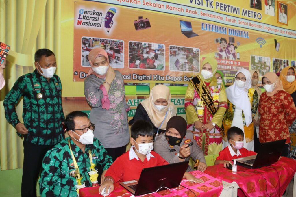 TK Pertiwi menjadi lokasi Gebyar Literasi Deklarasi Program Sekolah Penggerak PAUD-HI, Satuan Pendidik Ramah Anak, Sekolah Inklusi, SDIDTK Kota Metro Tahun 2022. Dengan tema ‘Menyiapkan Generasi Unggul Melalui Pembiasaan Literasi Sejak Dini’, Wali Kota Metro dan Wakil Walikota Metro turut hadir, Jumat (04/02/22).