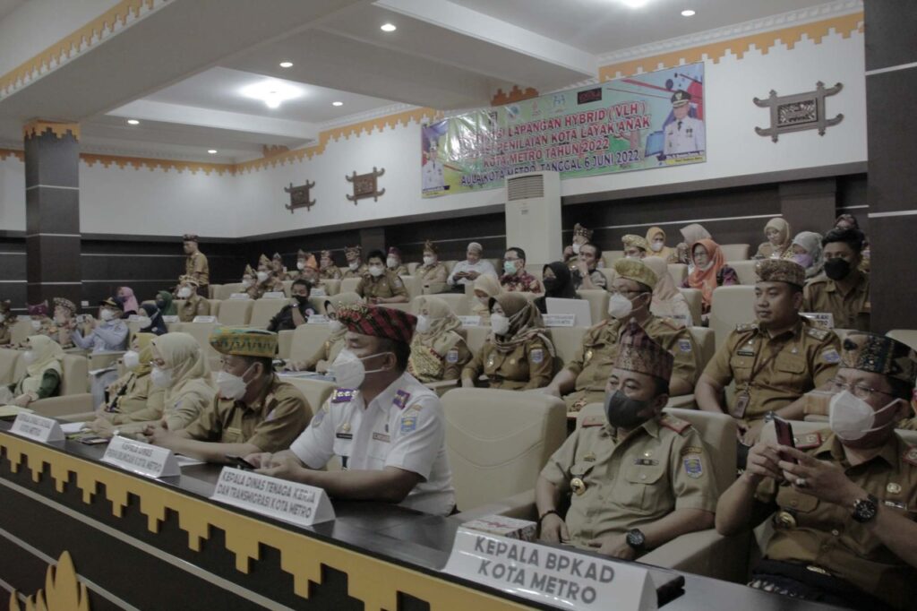 penilaian Kota Layak Anak (KLA) Tahun 2022 yang berlangsung di Aula Pemerintah Kota Metro, Senin (06/06/2022).