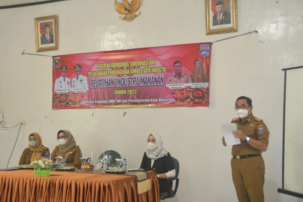 Pemerintah Kota Metro melalui Dinas Koperasi, Usaha Mikro Kecil Menengah (UMKM) dan Perindustrian mengadakan kegiatan Pelatihan Pembuatan Aneka Kue Kering dan Masakan Ketring, di Gedung LEC Kartika Metro, Selasa 19/7/2022.
