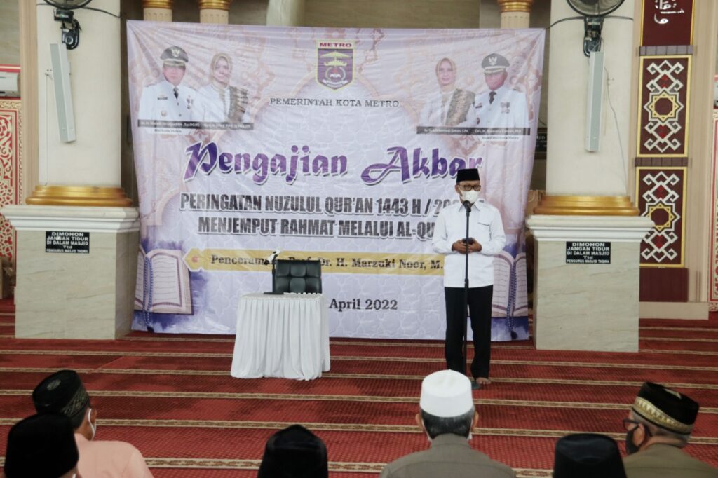 Pemerintah Kota Metro menggelar Pengajian Akbar memperingati Nuzulul Qur’an 1443 H/2022 M, digelar di Masjid Taqwa Kota Metro, Selasa (19/04/2022).