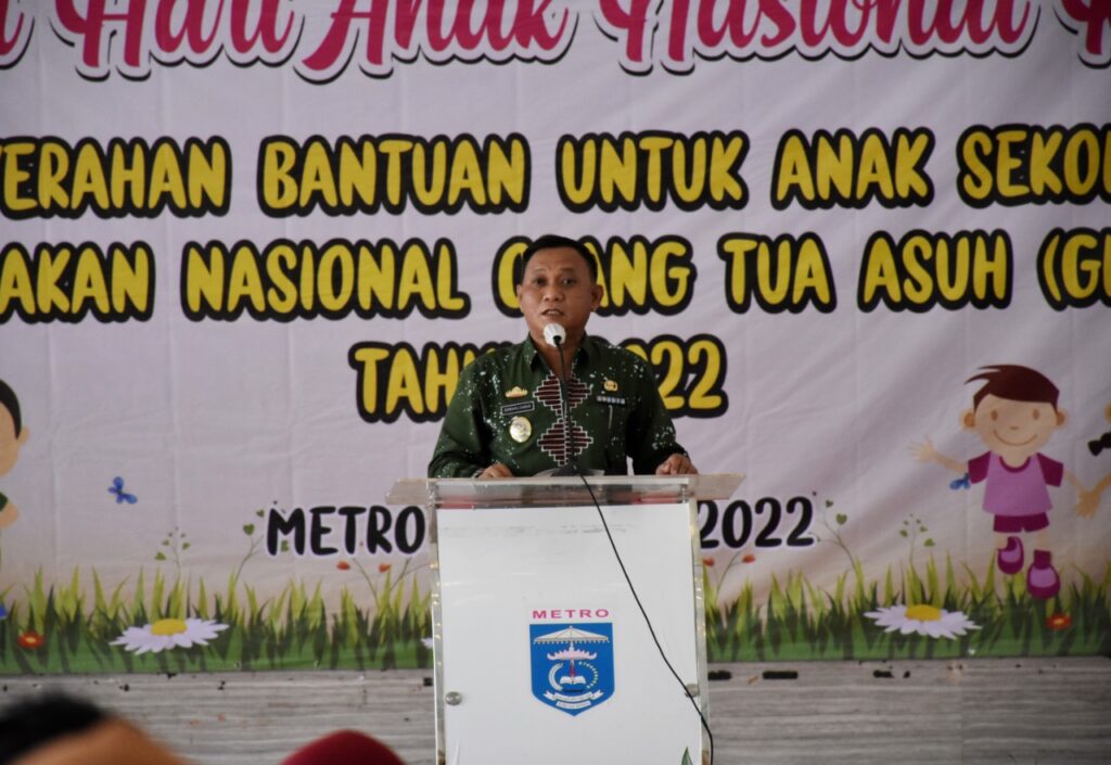 Hari Anak Nasional Kota Metro Tahun 2022 menjadi peringatan untuk bersinergi bersama dalam upaya menjaga anak-anak agar tidak melakukan dan mengindari tindakan bullying yang dapat merusak generasi penerus bangsa Indonesia. Rangkaian acara peringatan ini diawali dengan pawai jalan santai oleh anak-anak Paud se-Kota Metro.