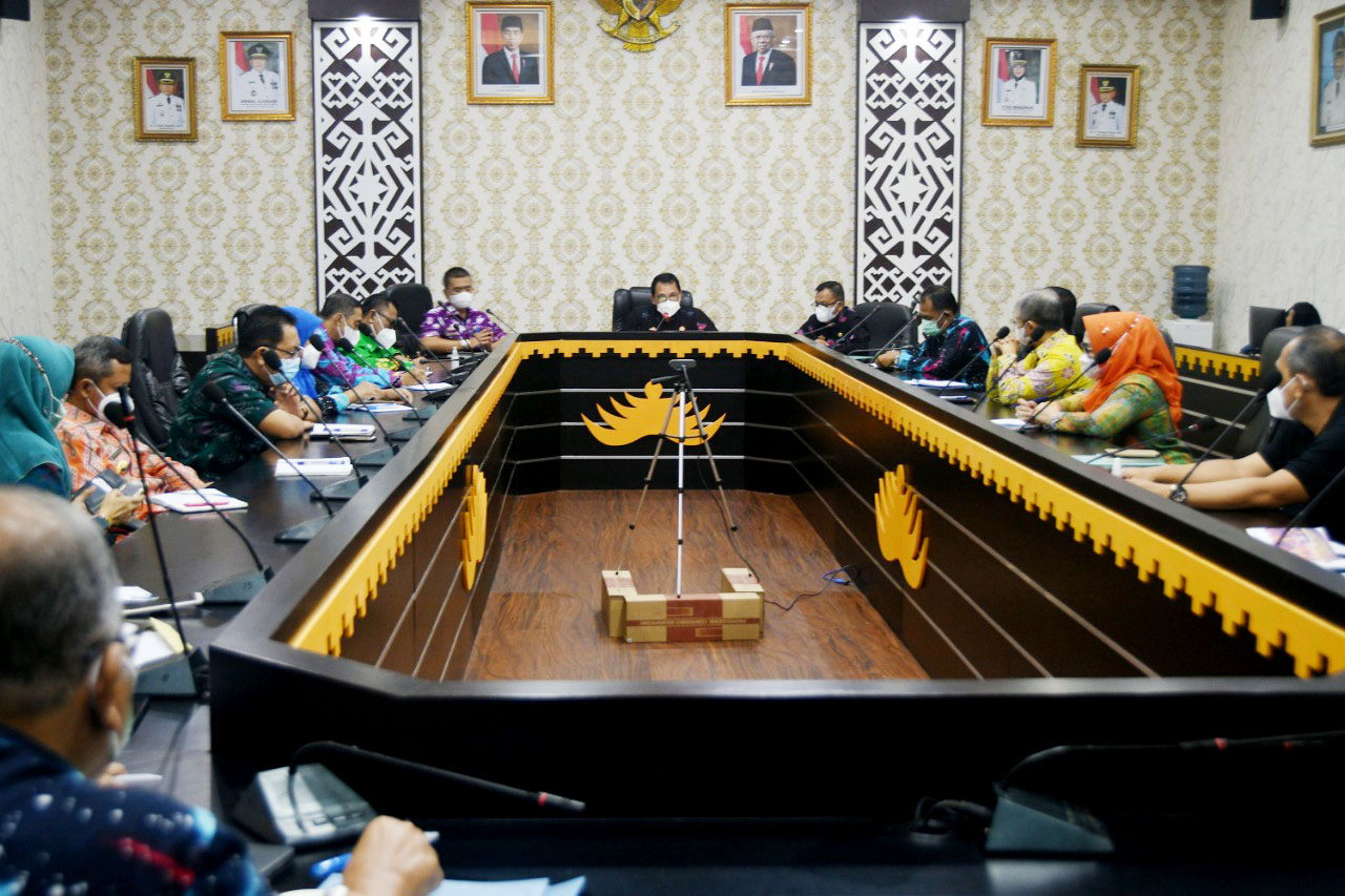 Walikota Metro Wahdi memimpi rapat Optimalisasi Serapan Anggaran Organisasi Perangkat Daerah (OPD) di OR Setda, Jumat (07/05/2021).